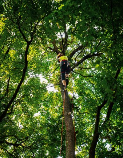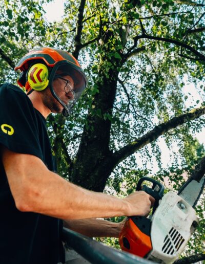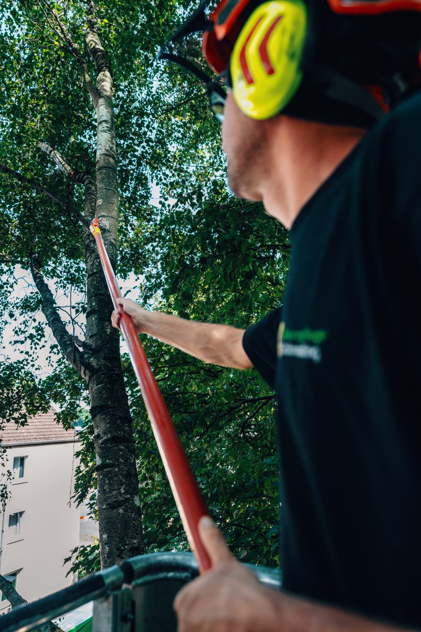 Gemeinsam übernehmen wir alle Aufgaben – von der Erstellung zertifizierter Gutachten über die fachgerechte Durchführung von Baumpflegearbeiten, sei es mit Seilklettertechnik oder Hubsteiger, bis hin zur Entwicklung von Sanierungskonzepten. Auch die Sicherung und Pflege Ihrer Bäume sowie die fachgerechte Baumfällung unter höchsten Sicherheitsstandards gehören zu unserem Leistungsspektrum. Ausgestattet mit modernster Ausrüstung und unserer langjährigen Erfahrung, können wir Ihnen eine umfassende und individuelle Beratung anbieten.